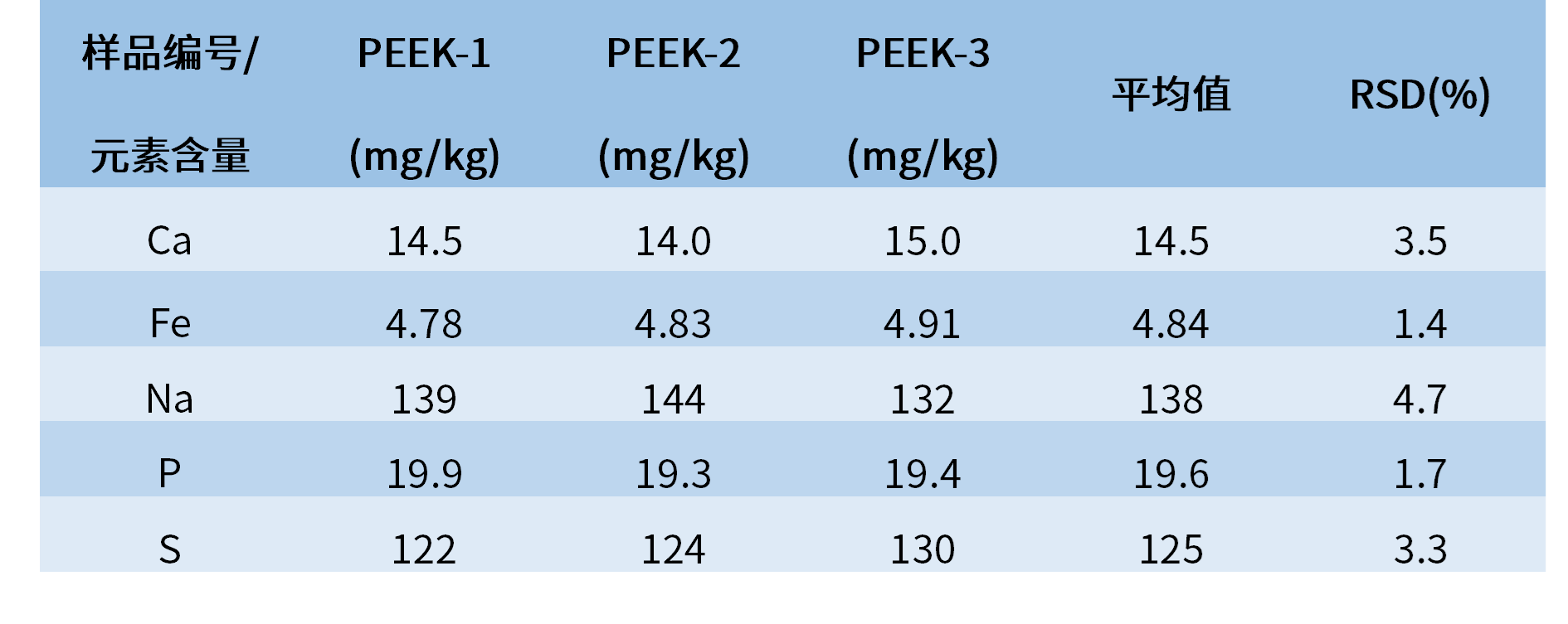 本方案采用UltraWAVE 超級(jí)微波消解系統(tǒng)對(duì)聚合物PEEK進(jìn)行前處理,具體結(jié)果如下: