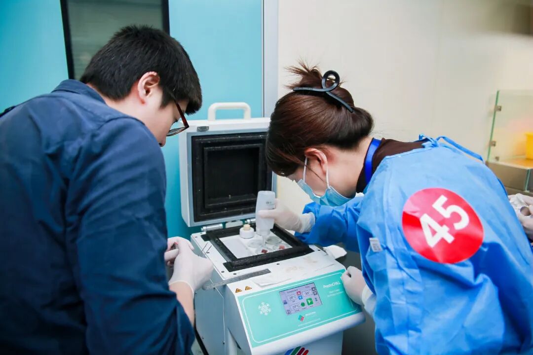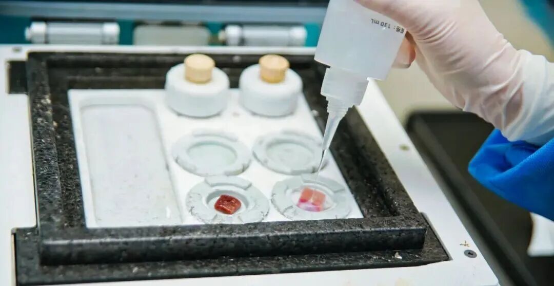 在冰凍培訓(xùn)時,使用了冰凍包埋機(jī)PrestoCHILL,快速的冷凍使得操作流程更加順暢,降低了冰晶的產(chǎn)生使得切片質(zhì)量也更好,“Face down”面下包埋技術(shù)給技術(shù)老師們提供了解決難題的方案,讓我們一起為提高技術(shù)質(zhì)量而努力!